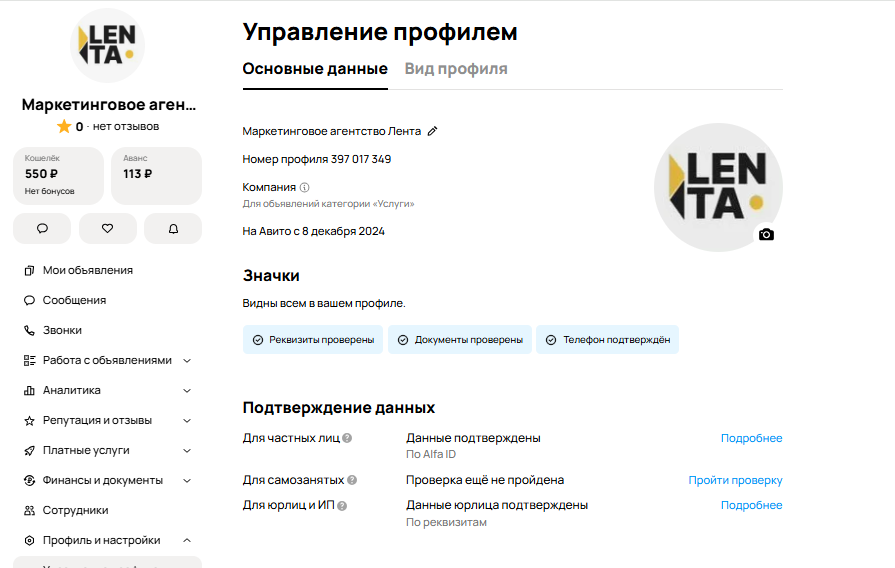 Маркетинговое агентство «Лента» из Новосибирска обратилось к нам с задачей: создать новый источник клиентов через Авито. У компании уже был логотип, сайт и устойчивая репутация, но компания хотела расширить присутствие на онлайн-платформах.