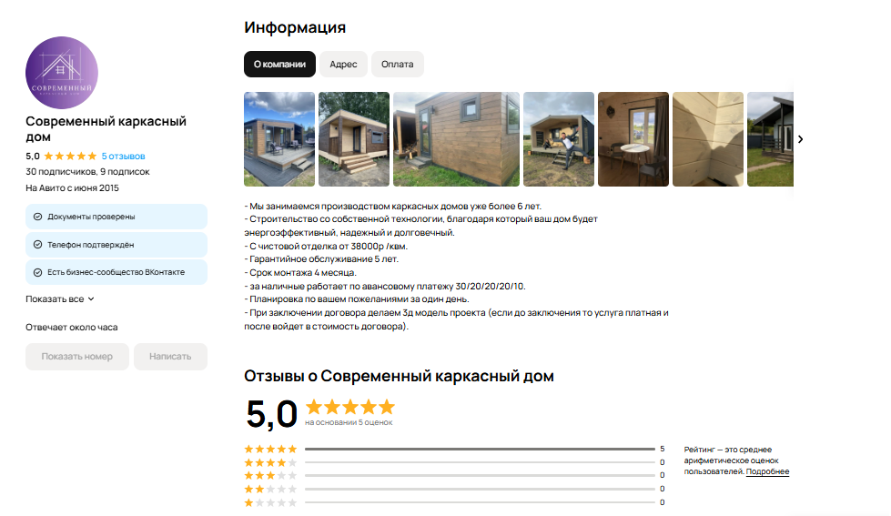 Мы понимаем, что для такой серьезной покупки, как дом, доверие — ключевой фактор. Поэтому мы превратили профиль в визитку надежного подрядчика: