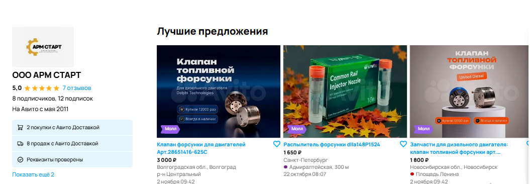 Кейс: Продажа форсунок для авто