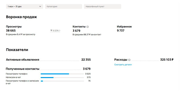 Всего было получено 3 679 обращений со средней ценой в 88 рублей при общем бюджете 325 105 рублей.