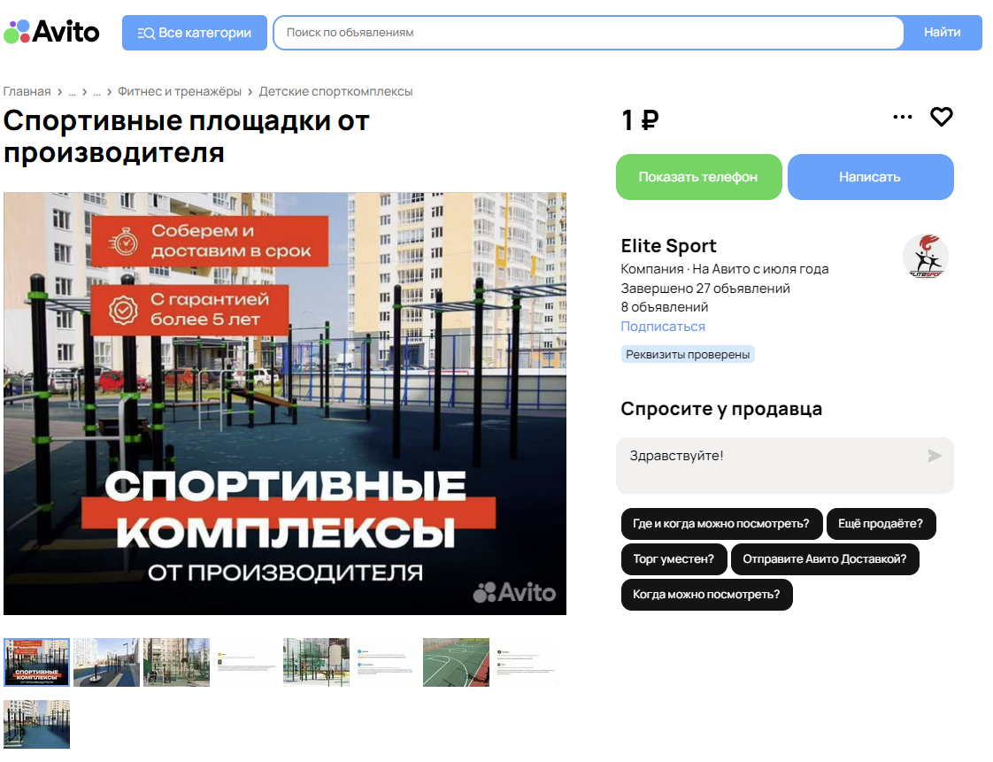 Кейс: продвижение на Авито «Детские уличные площадки, спортивные комплексы»